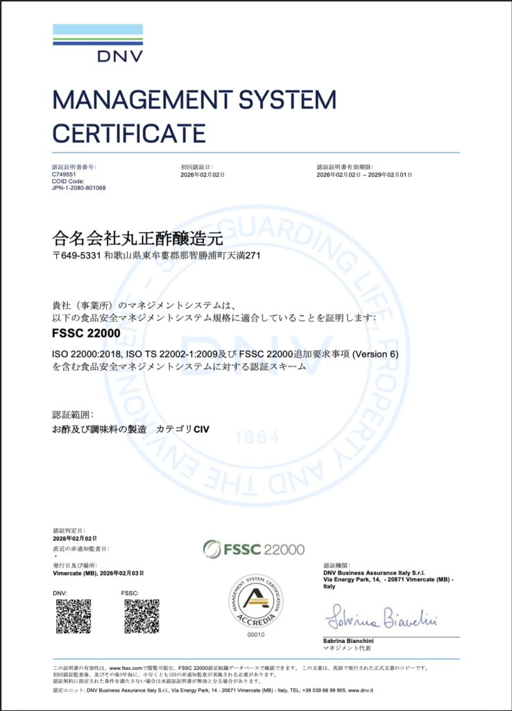 2026年2月2日にて、FSSC22000 を取得いたしました。